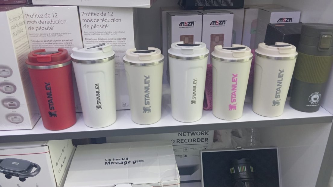 Bu beyaz Stanley termos şişe, sağlam kapak ve dayanıklı tasarıma sahiptir, içeceklerin sıcak veya soğuk kalmasını sağlar. Hafif ve kolay taşınabilir.