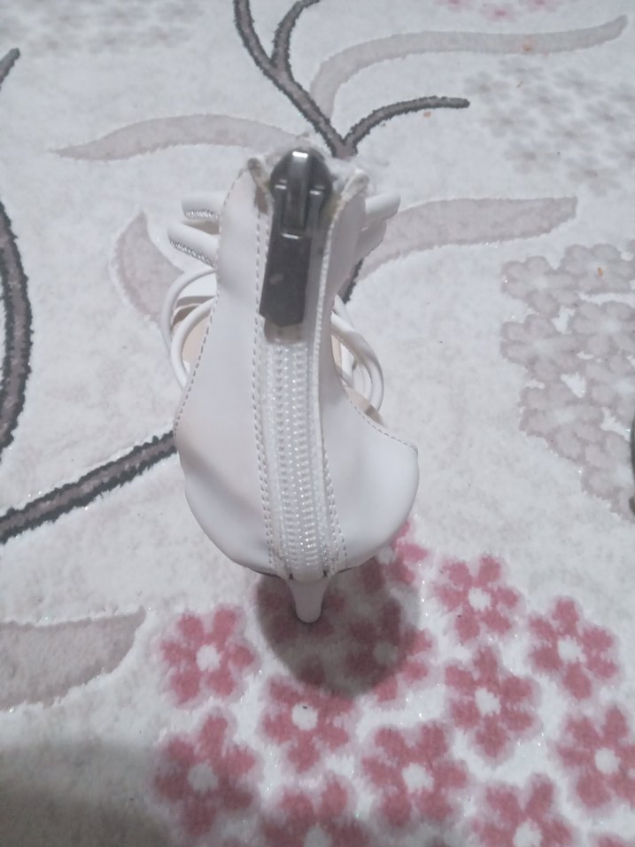 Beyaz arkadan fermuarlı, stiletto topuklu ayakkabı. Sokak stili ve açık hava için uygundur.