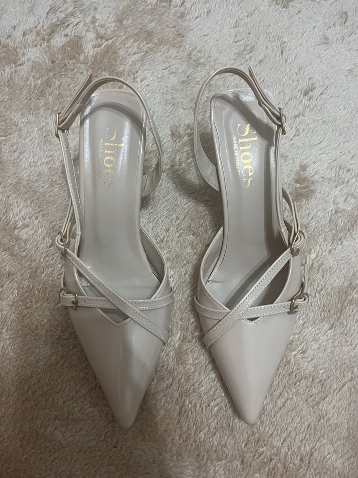 Beyaz Stiletto Tokalı Kadın Abiye Ayakkabı