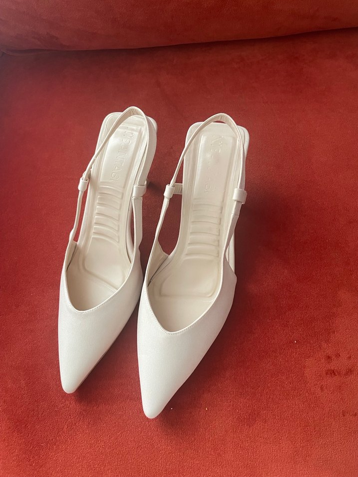Beyaz stiletto topuklu kadın abiye ayakkabılar, minimalist ve modern klasik tarzda, rahat kauçuk malzemeden üretilmiştir. Düğünler için zahmetsiz şıklık sunar. 40 numara fakat kalıbı dar 38-39 ince taraksız ayaklara daha güzel olur diye düşünüyorum hiç giyilmedi fakat kutusu yok güzelce paketlenip kargolanacaktır