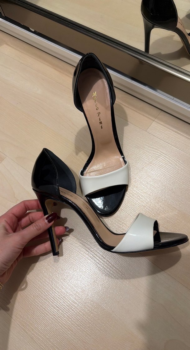 İtalyan Siyah Beyaz Stiletto Topuklu Kadın Akşam Ayakkabısı
