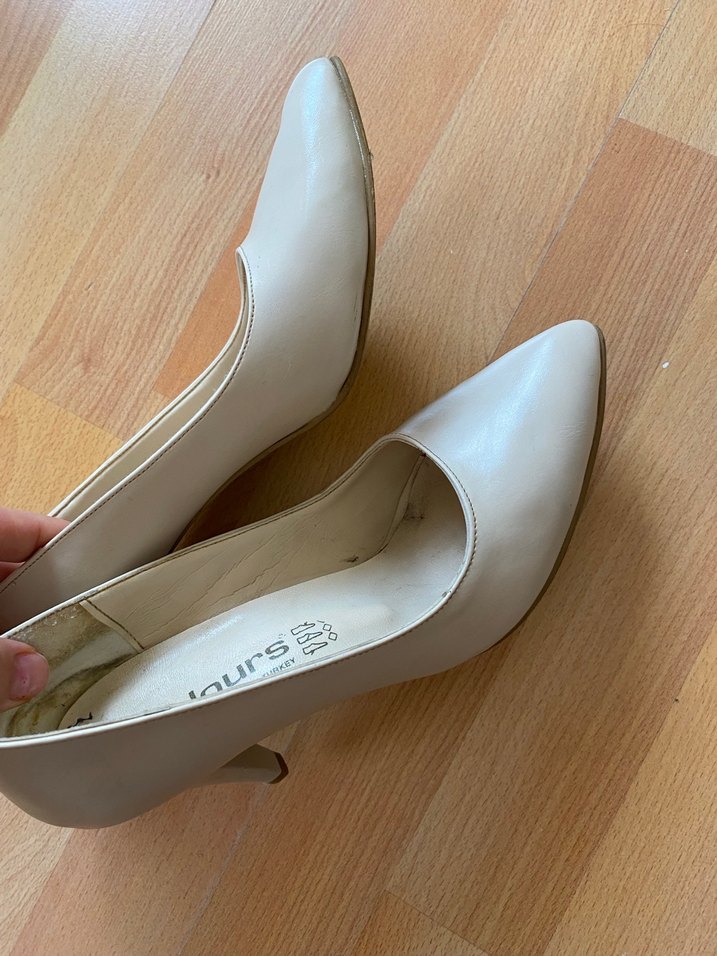 Beyaz, bağcıklı stiletto topuklu kadın ayakkabısı, klasik ve geleneksel tarzda, ofis kullanımı için uygundur. Yumuşak dokulu, pastel tonludur.