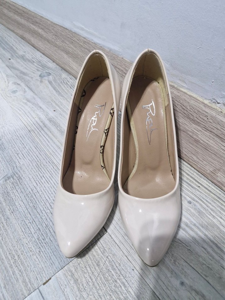 Beyaz, pastel yılan desenli stiletto topuklu ayakkabı, bağcıklı detaylı ve modern klasik tarzda. Kauçuk malzemeden, günlük şıklık için uygun.