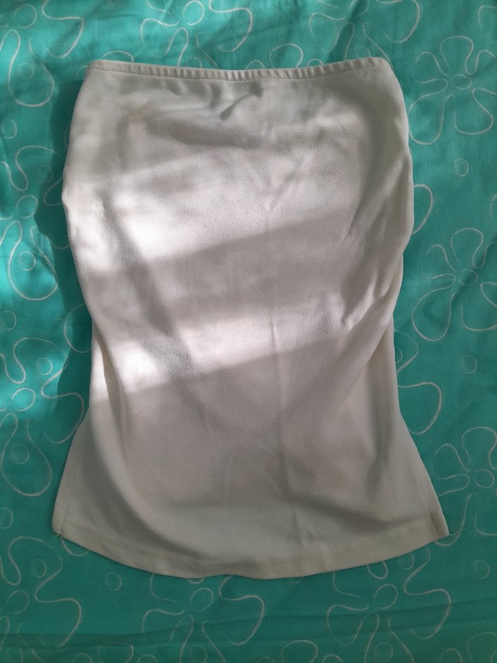 Beyaz renkte, düz ve desen içermeyen straplez. cok az giydim artik giymiyorum diye satiyorum kusuru yok