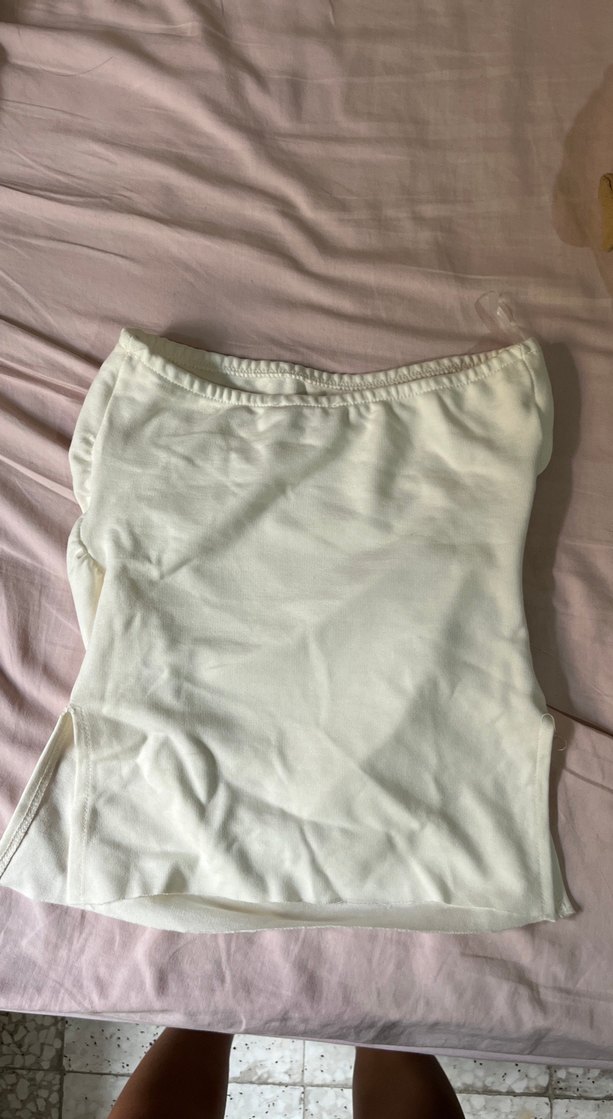 Beyaz, midi boy, vücuda oturan hamile ve emzirme iç çamaşırı, rahatlık sağlayan yumuşak kumaştan üretilmiştir.