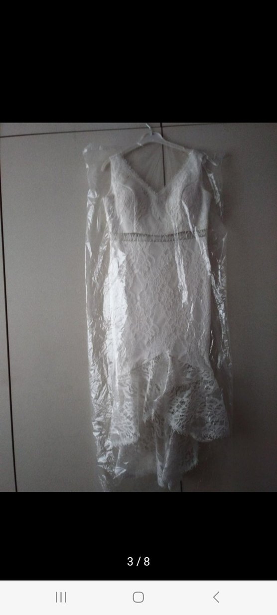 Uzun, vücuda oturan A kesim gelinlik, straplez yaka ve kolsuz tasarıma sahiptir. Minimalist, bohem tarzda, açık beyaz renktedir. gelinlik olarakta kullanılabilir
