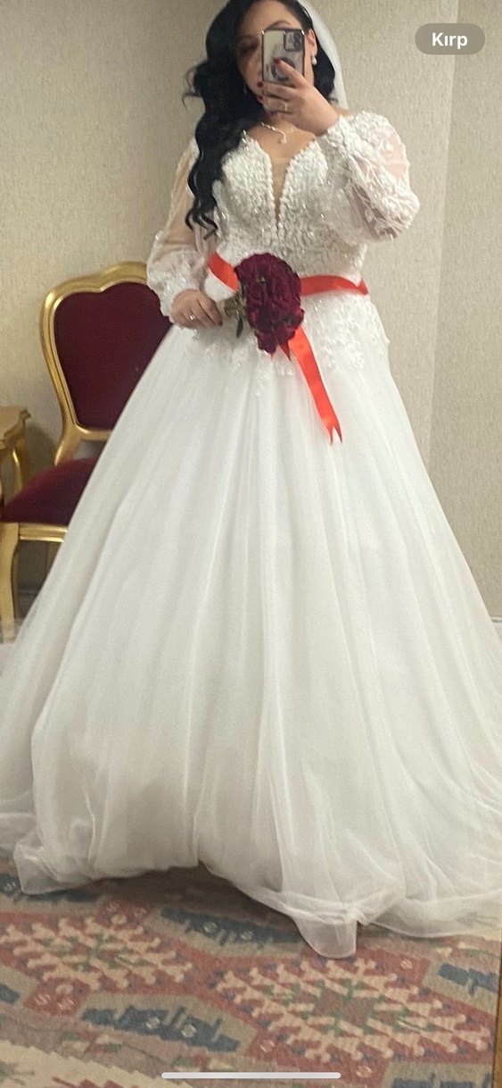 Beyaz renkte, ve vintage detaylara sahip A kesim uzun gelinlik, helen model 42 44 46 beden uyumludur 1 kere nikahta giyilmiştir herhangi bir kusuru yoktur duvağıyla birlikte gönderilecektir.