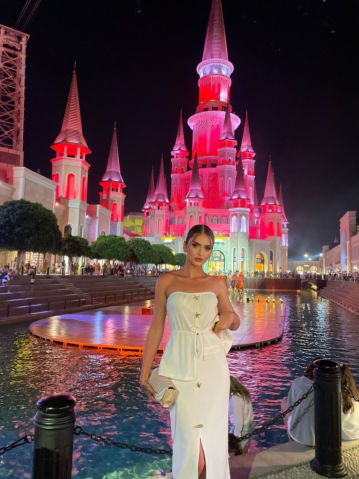 Beyaz, askısız uzun etek crop takım, ince kesim ve ipeksi kumaşla. Transparan detaylar ve tie-dye desenli, parti ve sokak modasına uygun.