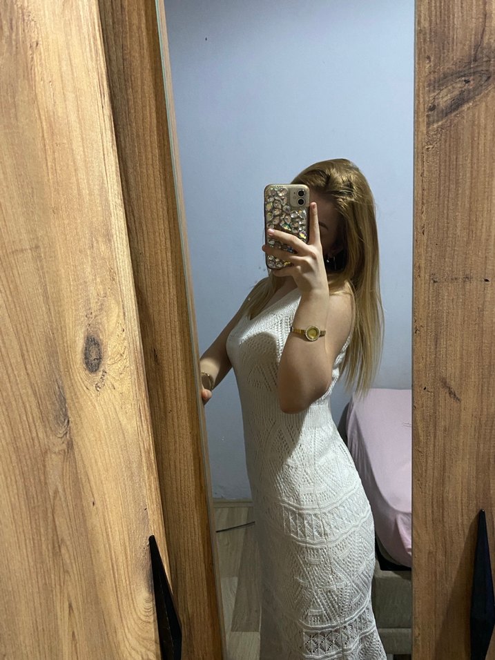 Beyaz, straplez ve ince askılı triko midi elbise, şeffaf detaylı, sade ve cesur stil için uygundur.
