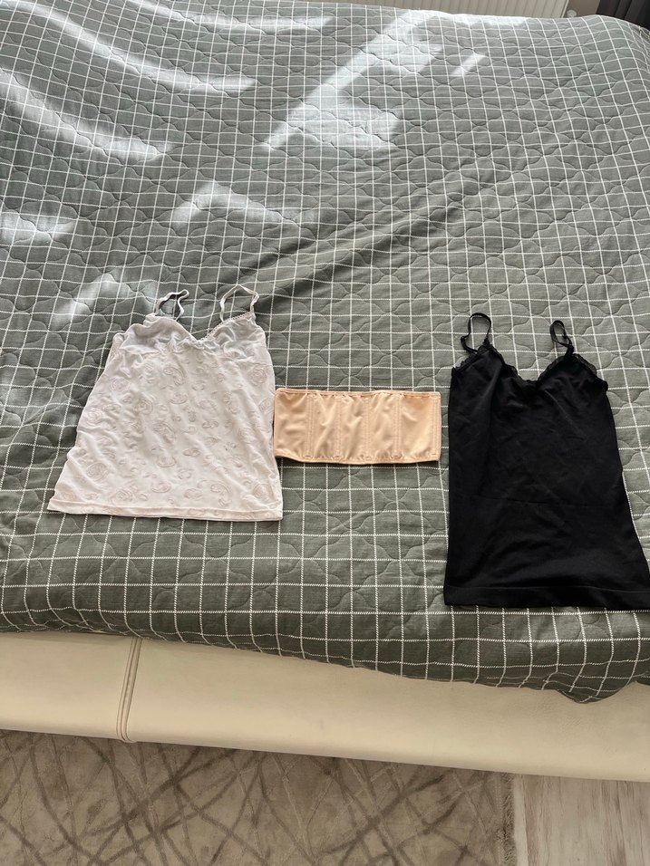 Düz beyaz, straplez, kadın atlet. İnce ve şık sentetik kumaştan, günlük kullanıma uygun minimalist tasarım sunar. 2 tane atlet bir tane bel korsesi penti