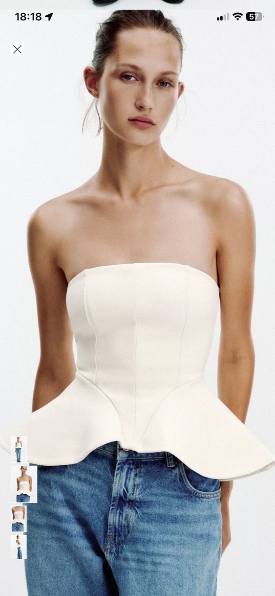 Beyaz straplez, vücuda oturan midi uzunlukta büstiyer. Pürüzsüz sentetik kumaştan, çağdaş ve minimalist tasarım, günlük kullanım için uygun.