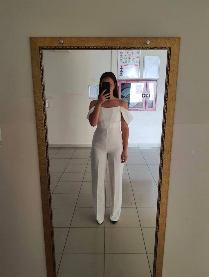 Sadece bir kez giyildi. İlk fotoğrafa ütüsüzdür, o şekilde de kullanılabilir.