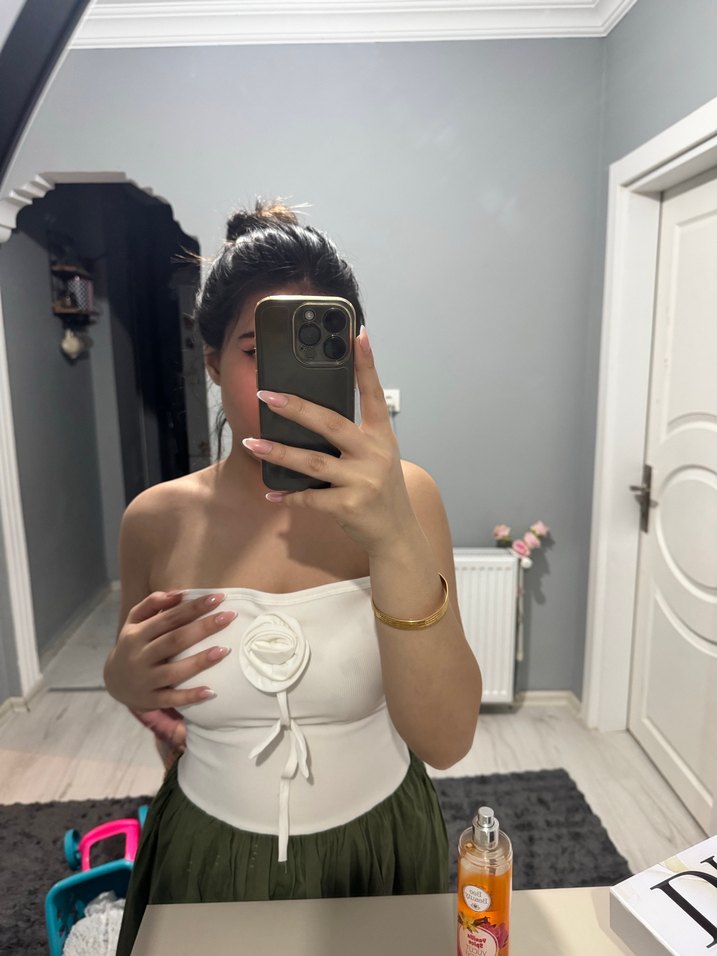 Pamuk kumaştan, beyaz straplez ve vücuda oturan midi bustiyer. Minimalist, kolsuz tasarımıyla rahat ve şık bir sokak stili sunar.