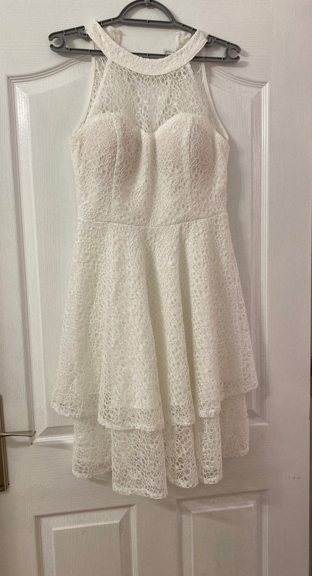 Bu beyaz straplez midi mini elbise, dantel detaylarıyla bohem Paris tarzını yansıtır. Klasik şıklık için uygun, kolsuz ve vücuda oturan tasarıma sahiptir.