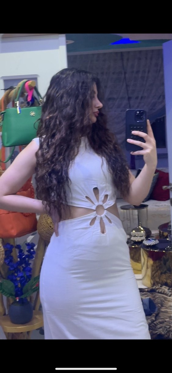 Beyaz, straplez, vücuda oturan midi elbise, belde çiçek şeklinde kesim detayı bulunur. Sentetik kumaştan, bohem tarzda, parti ve günlük kullanıma uygun. Sıfır ürün M/L bedende giyinir