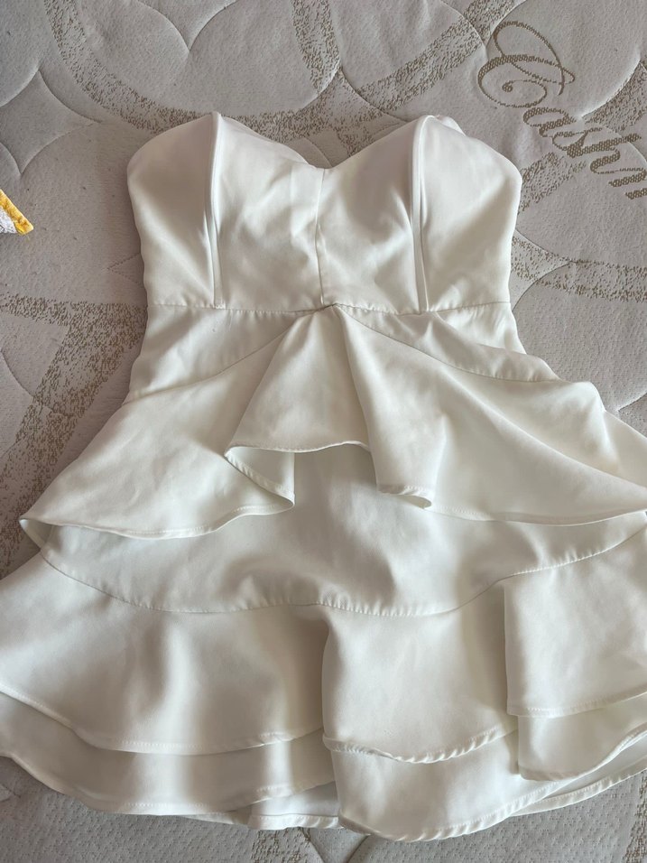 Beyaz Straplez Mini Abiye