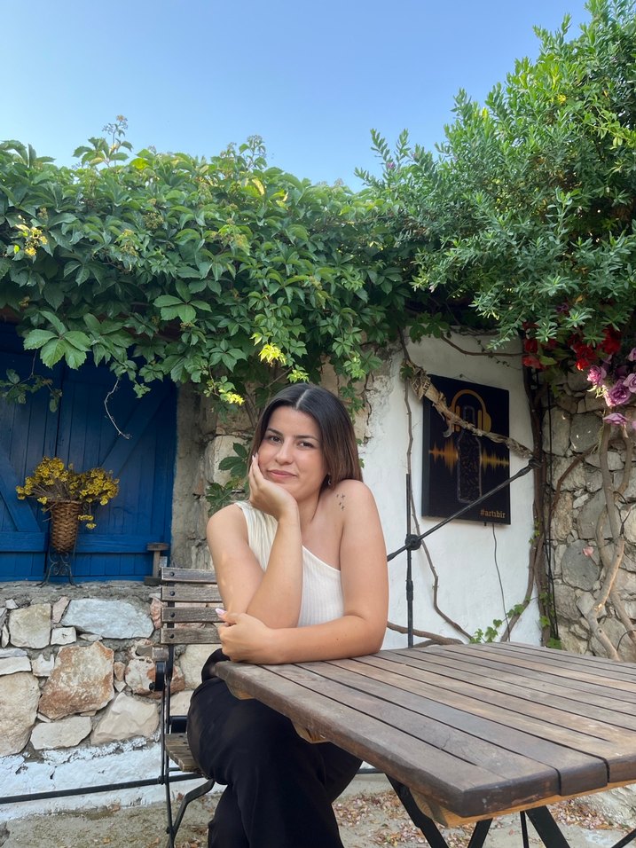 Beyaz pamuklu mini crop, straplez yakalı ve ince askılıdır. Baskılı deseni ve dar kesimiyle romantik akşamlar için şık bir tercih.