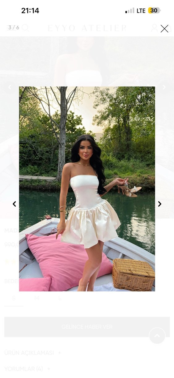 Bu beyaz mini elbise, straplez yakalı ve kabarık kolsuz tasarıma sahiptir. Saten kumaştan yapılmış, bohem tarzındadır ve parti için uygundur.