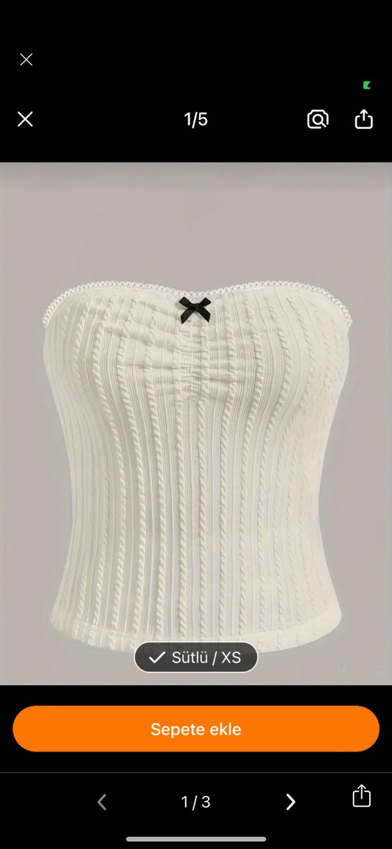 Beyaz, örgü kumaştan yapılmış straplez, vücuda oturan büstiyer. Ön kısmında küçük siyah fiyonk detayı bulunur. Günlük kullanıma uygun, desensiz ve hafif tasarım.