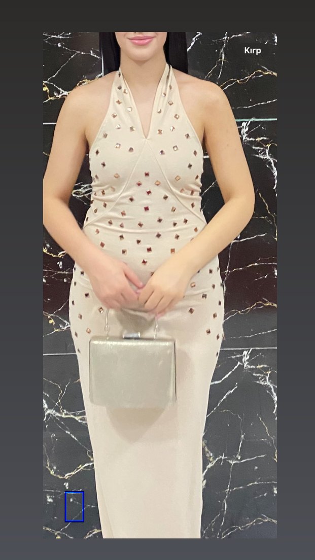 Beyaz, straplez ve askılı kollu, payet ve nakış detaylı, vücuda oturan midi boy abiye elbise. Sadece 1 sefer giyildi