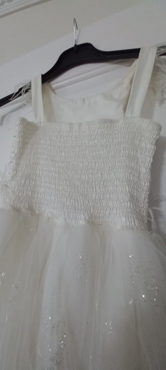 9–10 yaş için uygundur. Özel günler, düğün, nişan, doğum günü ve gösteriler için ideal, beyaz straplez prenses model gelinlik. ✨ Tül etekli, zarif ve şık tasarım ✨ Hafif yapısı sayesinde çocukları rahatsız etmez ✨ Fotoğraflarda çok güzel durur ✨ Temiz ve çok iyi durumda, yırtık, leke yok Sadece 1 kez kullanıldı. Fiyat: 1.000 TL Pazarlık payı vardır, makul tekliflere açığım