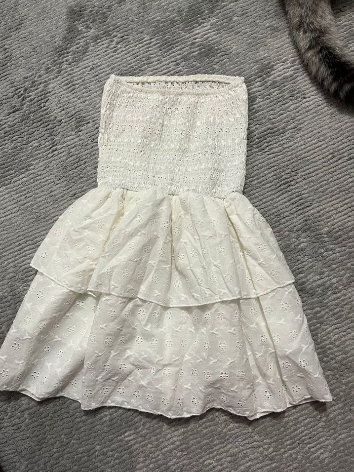 Beyaz straplez mini elbise şortlu bir kez giyildi yeni gibi