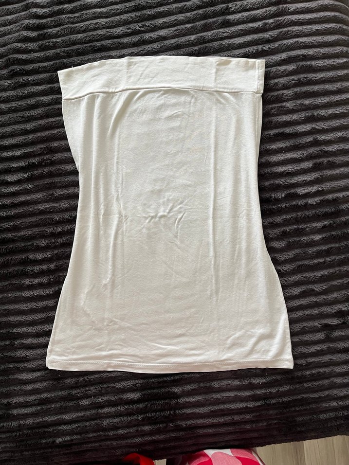 Beyaz Straplez üst alt kısmında dikiş izi var yumuşak kumaşa sahip S M L bedene de bence olur esnek çünkü