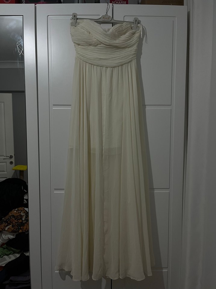 Beyaz Straplez Uzun Abiye Elbise nişan nikah bride elbisesi