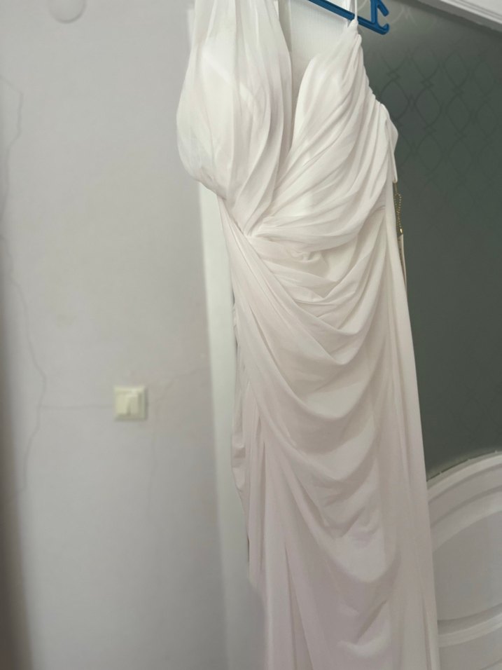 Fitted kesim, straplez beyaz gelinlik, uzun boy ve modern klasik tarzda, zarif drapelerle minimalist düğün için uygundur. Etiketli üründür fiyatı çok uygun tutulacaktır elimden çıksın diye alana şimdiden hayırlı olsun.