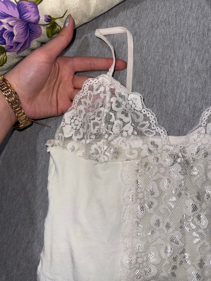 Beyaz Strappy dantelli bluz
