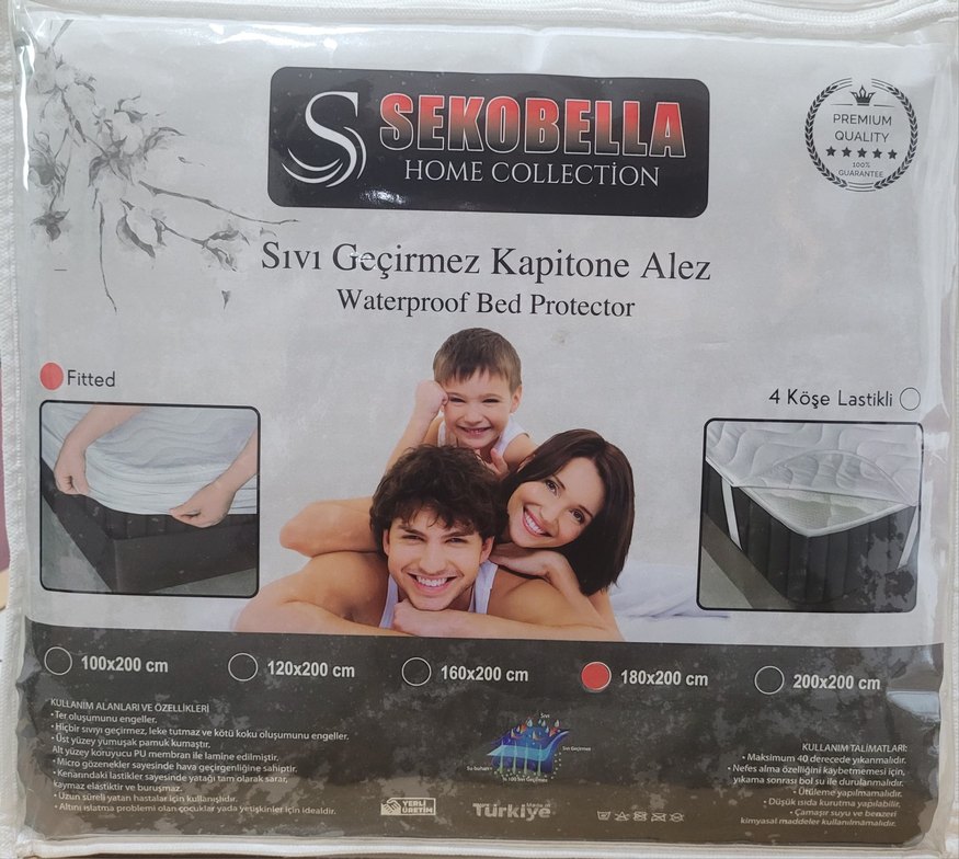 Beyaz renkte, su geçirmez kapitone yatak alezi sıvıların yatağa geçmesini önler. 180x200 cm ölçülerinde. Sekobella Home Collection ürünüdür.