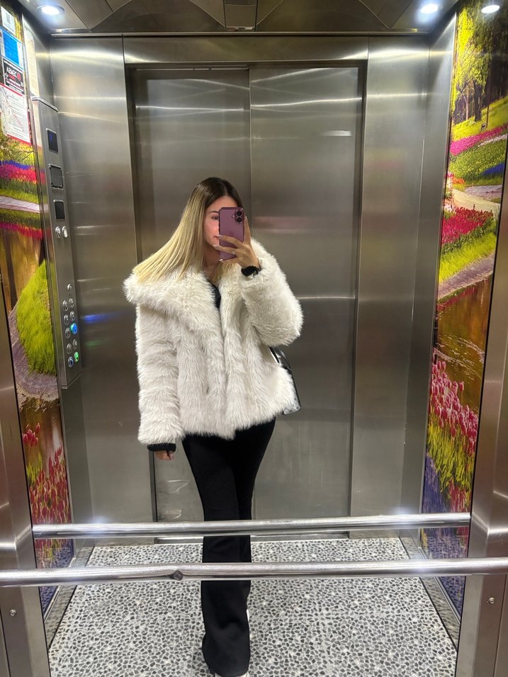 Beyaz renkli, suni kürk detaylı, uzun kollu ve fitted kesim midi kaban, rahat ve şık sokak stili için uygundur. ❄️ alalı 1 /2 ay oldu siyahını almak için satıyorum sıfırdan farksız herhangi bir sorunu yok