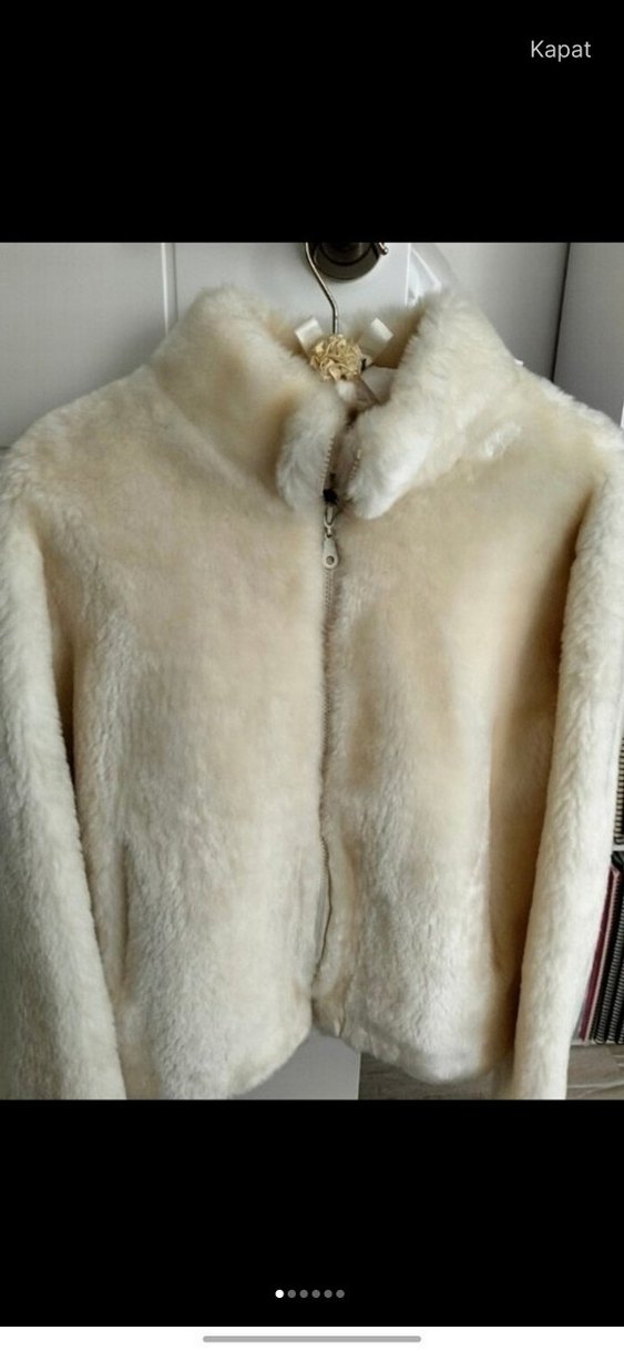 Parlak beyaz suni kürk detaylı, yakalı ve uzun kollu, midi boy, vücuda oturan sokak tarzı mont. Rahat ve sıcak tutar.
