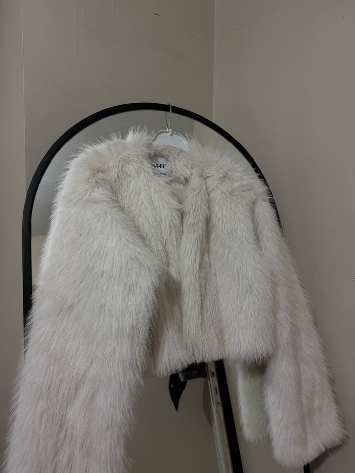 Beyaz Suni Kürk Midi Ceket
