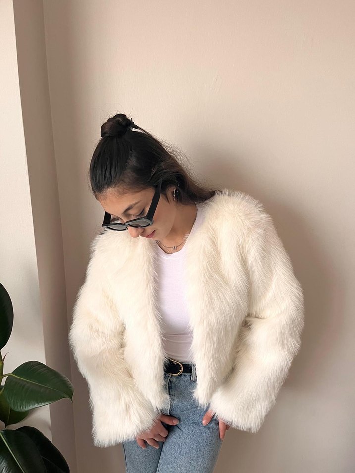 Beyaz Suni Kürklü Mont