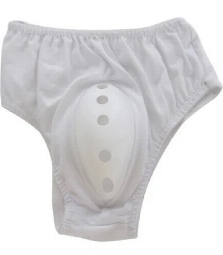 Beyaz renkte, normal midi boyda, vücuda oturan sünnet külotu, konfor ve destek sağlar.