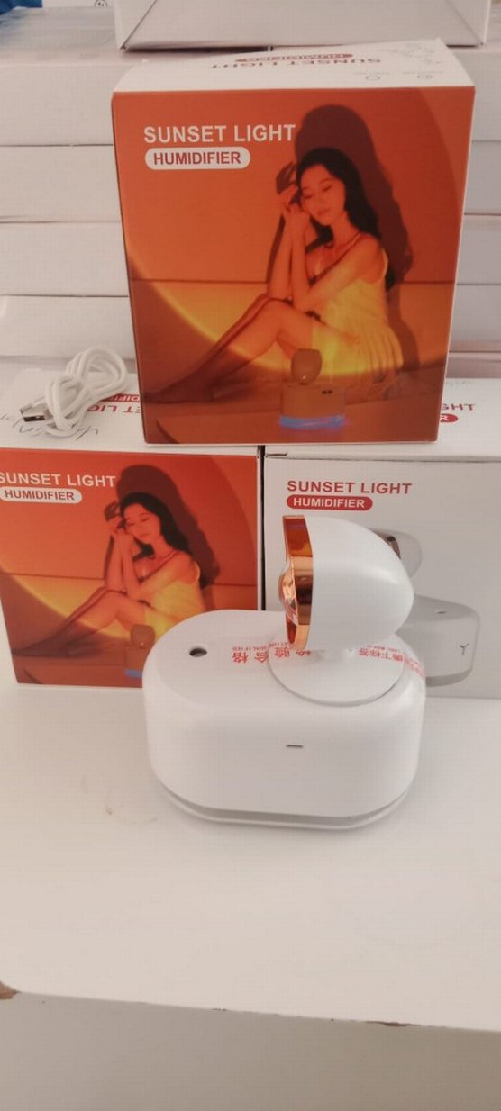 Beyaz renkli nemlendirici, gün batımı ışığı efekti ve kompakt tasarıma sahiptir, havayı nemlendirir ve ortamı güzelleştirir.