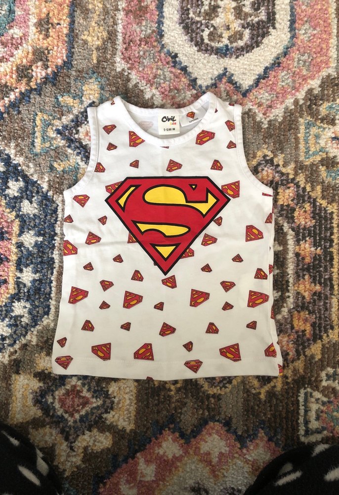 Beyaz zemin üzerine çoklu Süperman baskıları olan renkli çocuk atleti, yumuşak ve rahat kumaştan üretilmiştir. ♂️