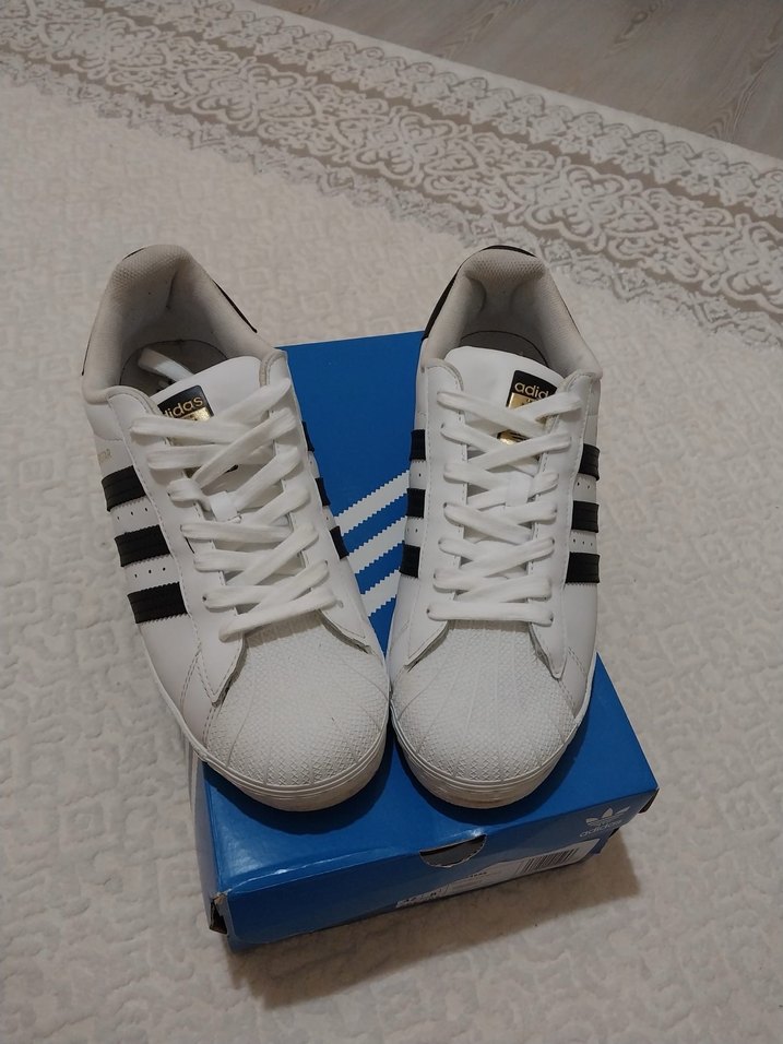 Beyaz süperstar Adidas spor ayakkabısı, düz taban , rahat kauçuk malzemeden üretilmiştir. Spor ve günlük kullanım için uygundur.