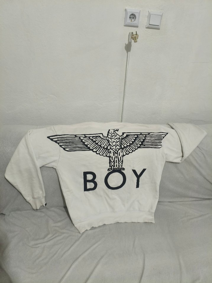 BOY LONDON MARKA , S beden Pamuklu, uzun kollu, gri renk baskılı sweatshirt. Bol kesim ve bisiklet yaka ile rahat bir görünüm sunar. "BOY" yazısı ve kartal deseniyle dikkat çeker.