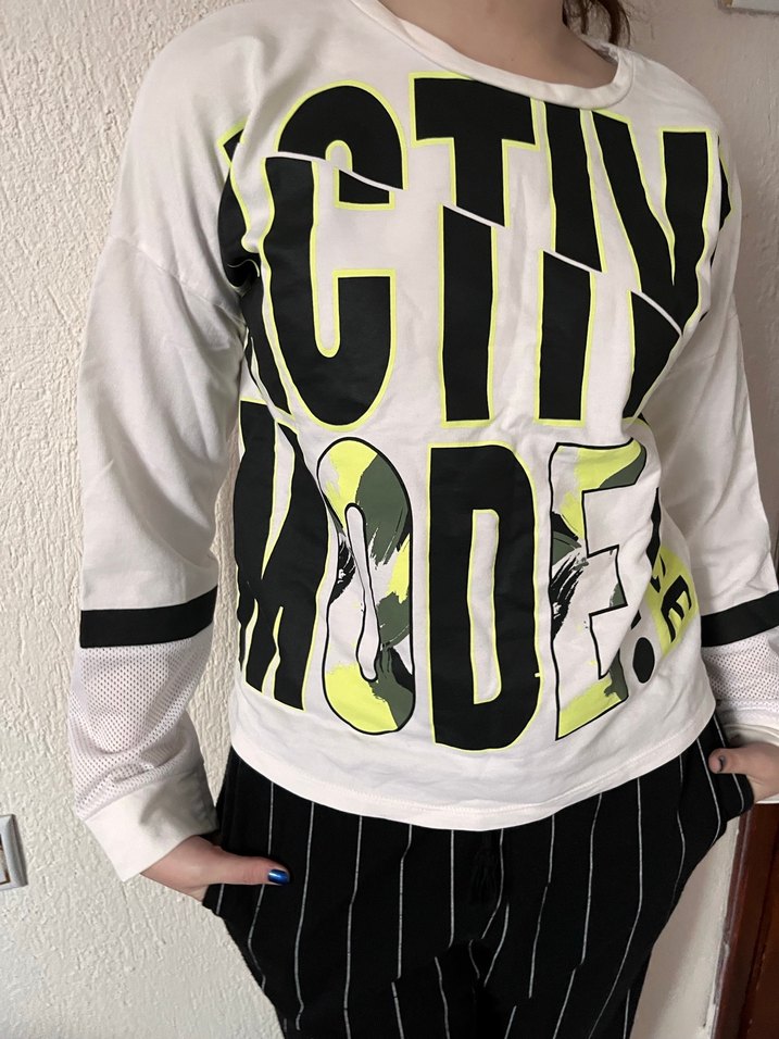 Beyaz, uzun kollu, yuvarlak yaka, bol kesim sweatshirt.LC waıkıkı 12-13 yaş uyumludur.