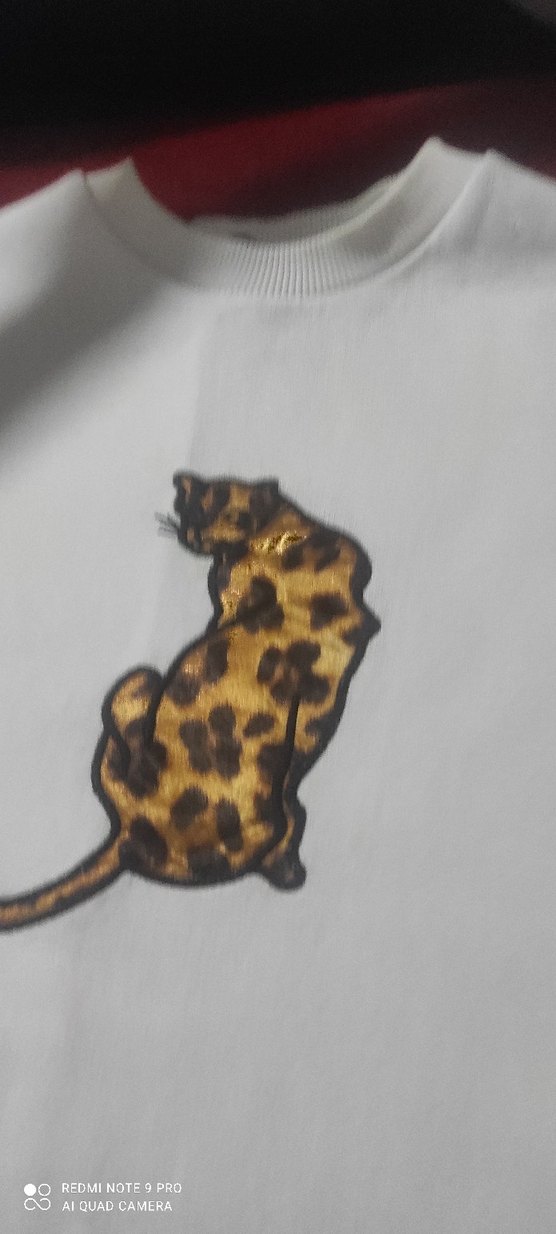 Koyu kahverengi leopar desenli, kürk detaylı streetwear tarzı kedi giysisi.