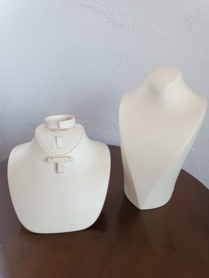 Beyaz 2 adet takı sergileme mankeni,biri boyun kolye için diğeri ise bileklik kolye ve küpe sergileme mankeni..az kullanıldı. hafif bir çizik bulanmakta.. kullanilabilir ve temizdir.