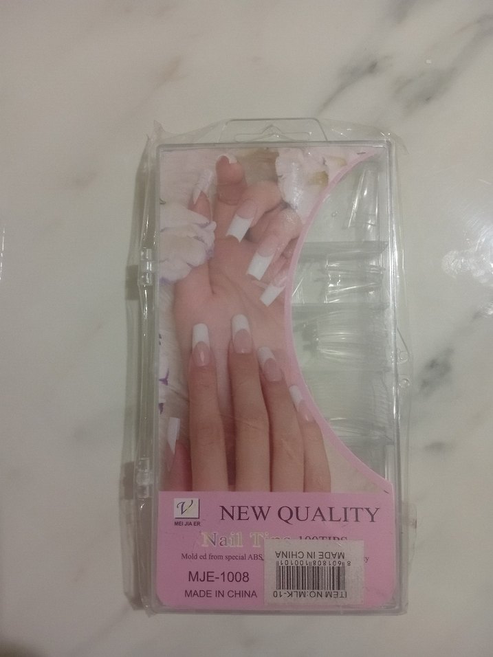 MJE-1008 kodlu, Çin yapımı beyaz kare takma tırnak seti. Paket üzerinde "New Quality" ibaresi bulunur.