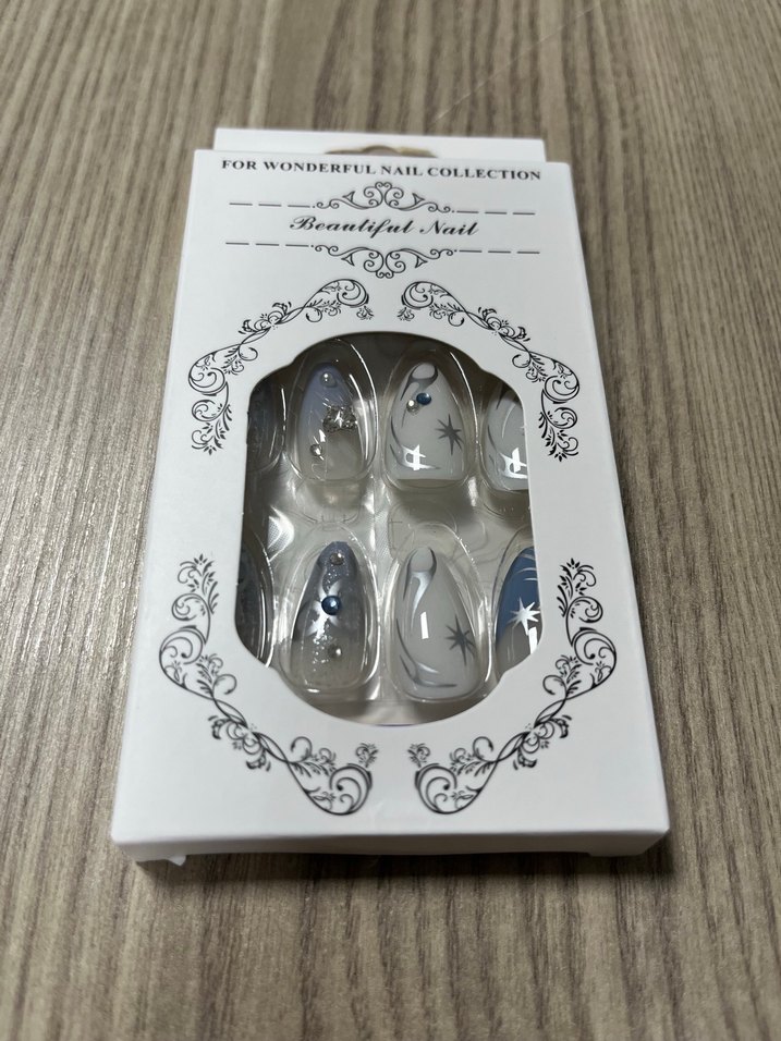 Beyaz renkte, küçük süslemeler ve zarif desenler içeren tırnak süsleri. ✨24 adet tırnak 24 adet yapıştırıcı bir adet Törpü