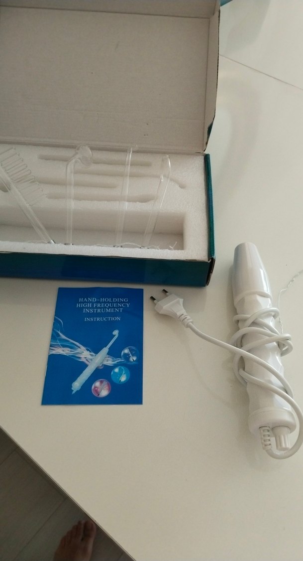 USB kablolu beyaz taşınabilir yüksek frekanslı kişisel bakım cihazı, cilt tedavisi için çeşitli şeffaf başlıklarla birlikte gelir. Talimat kılavuzu dahildir. ⚡