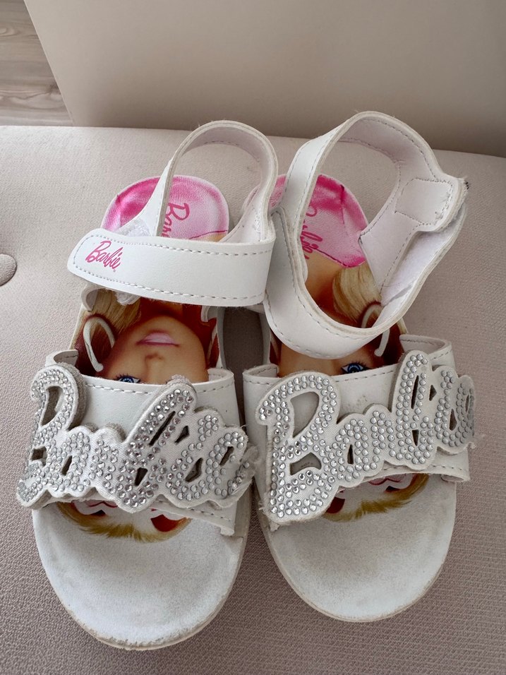 Beyaz kauçuk malzemeden yapılmış, taşlı Barbie baskılı ve tokalı kız sandaletleridir. Sokak modasına uygun, trend belirleyenler için şık bir seçim. ✨