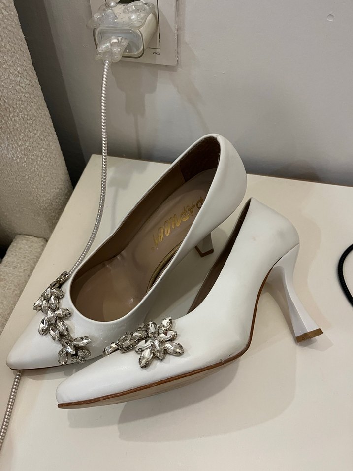 Beyaz Taşlı Kadın Yüksek Topuklu Abiye Gelin Ayakkabısı