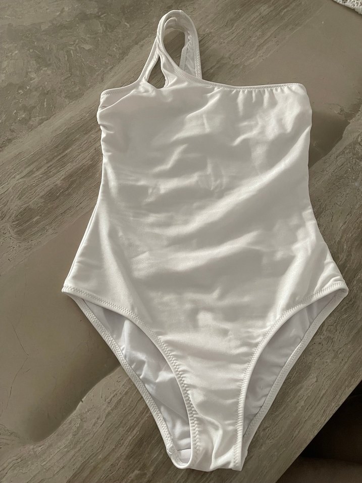 Tek omuz askılı, beyaz ve vücuda oturan bu kadın mayo, minimalist ve zahmetsiz şıklık sunar. ️