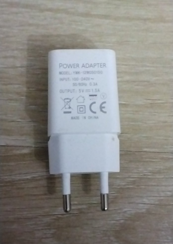 5V çıkış ve 1.5A akım gücüne sahip beyaz telefon şarj adaptörü. ⚡